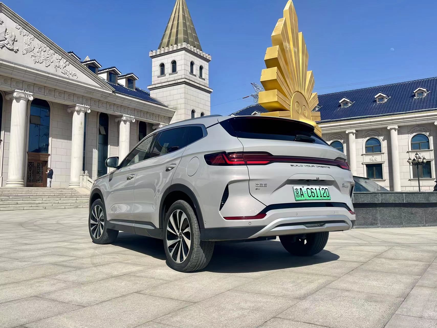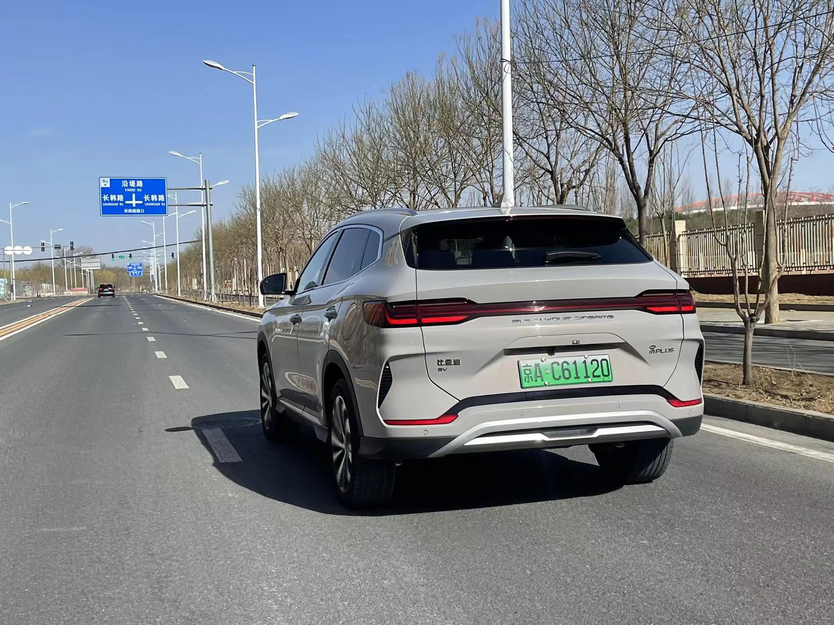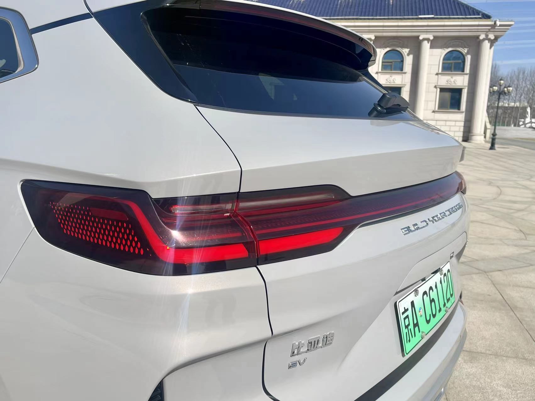 来到车身尾部,宋PLUS EV荣耀版车型同样造型饱满、圆润,配备了车顶扰流板以及当下流行的贯穿式尾灯,在点亮后让整车具有较为出众的视觉效果,同时也兼具不错的辨识度。