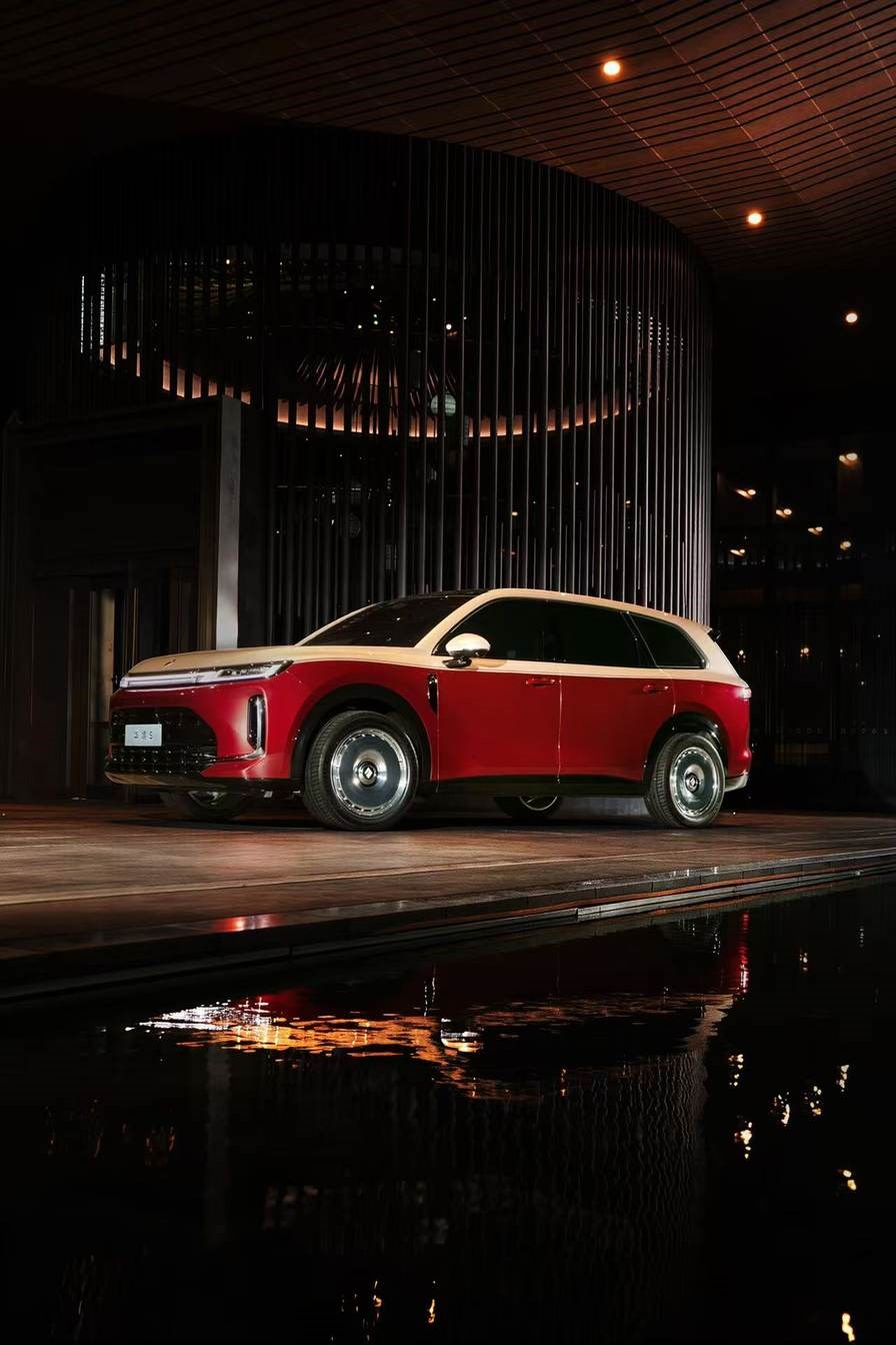从官方实拍图来看,华境S的设计颠覆了传统家用车的保守风格。红米双色车身大胆采用撞色设计,红色热烈与米色优雅形成强烈反差,配合流畅的轿跑式车身线条,营造出“移动艺术装置”的既视感。而最吸睛的当属其19英寸“大饼轮圈”——金属质感辐条与低扁平比轮胎的组合,既保留了复古豪华车的经典元素,又通过现代工艺赋予科技未来感。这种设计在20万元级车型中极为罕见,甚至被网友戏称“百万豪车下放”。